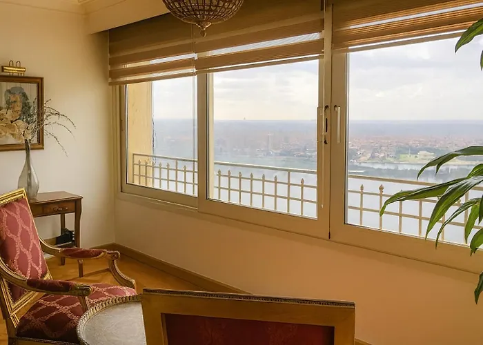 El Apartamento 6 Pyramids & Nile View-Downtown El El Cairo se encuentra a una distancia de 4 km del Museo Copto y a poco más de 10 minutos a pie de la estación de metro Maadi. El apartamento ofrece una terraza y vistas al río.
